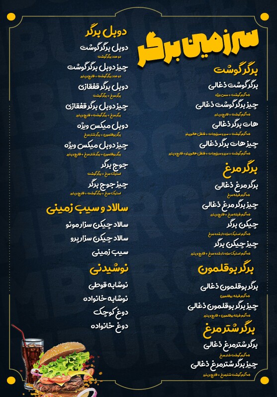 سرزمین برگر واقع در یزد،بلوار مدرس، ابتدای خیابان سنتو (ضلع شمال غربی پارک مارکار) آماده پذیرایی از شما همشهریان عزیز یزدی میباشد. هدف این مجموعه از ابتدا ارائه بهترین مواد غذایی با رعایت کلیه نکات بهداشتی همچنین مناسبترین قیمت برای مشتریان وفادار خود بوده ، هم اکنون پس از سالها حضور موفق این مجموعه در عرصه فروشگاههای مواد غذایی هیچگونه تغییری در کیفیت غذا ایجاد نشده بلکه با استفاده از بروزترین دستگاههای مدرن رستورانی بمراتب نسبت به قبل بهبود یافته . احترام به مشتری ، کیفیت مرغوب ، سفارش آنلاین غذا و همچنین طعم استثنائی برگرهای سرزمین برگر همیشه مدنظر بوده و تمامی کارکنان این مجموعه بدان پایبند بوده و هستند .